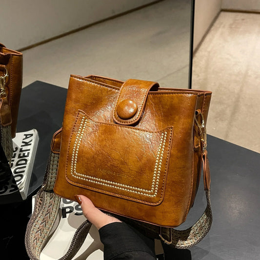 Vintage Leather Bucket Crossbody Bags for Women