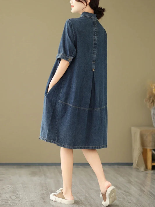 Woman Dress Vestidos Robe Elbise Loose Plus Size Fashion Polo Short Sleeve Denim Dresses