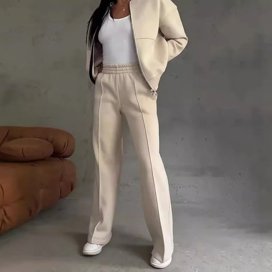 Women's Autumn Solid Color Sportwear Tracksuit Casual Zipper Sweatshirt Coat and Straight Pant Sets Winter Long Sleeve 2pcs Suit