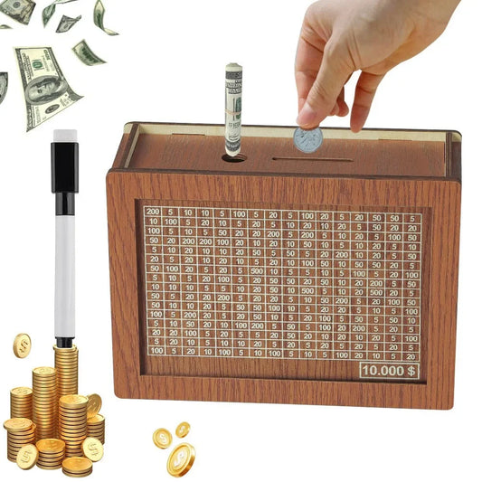 Wooden Piggy Banks, Dollar Cash Boxes, Reusable Assembled Cash Boxes, Home Decorations, with Savings Goals and Figures