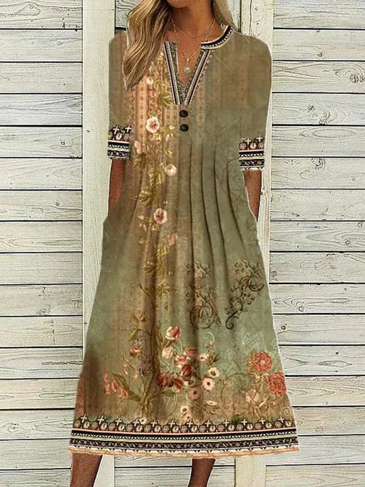 Fashion Elegant Casual Dress Woman Short Sleeve Loose Dress Woman Temperament Holiday Printed Dresses