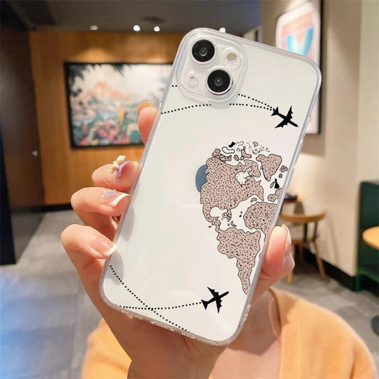 Fashion Planes World Map Travel Luxury Transparent Phone Case For iPhone 15 14 13 12 mini 11 Pro Max Cover